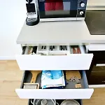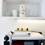 Wyposażony aneks kuchenny wyposażono w urządzenie do parzenia kawy/herbaty oraz kuchenkę mikrofalową, czajnik elektryczny i lodówkę. Przystanek Piscine Villa Olmo to w minucie jazdy od The Blue - Lake / City View Modern Apt Near Villa Olmo.